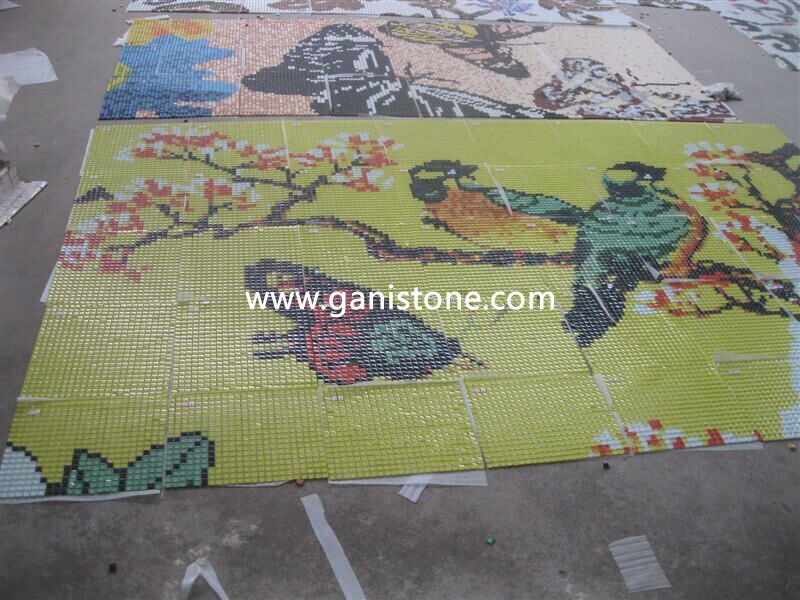 The glass mosaic mural are hand cut by artist and it can also be customized by our client. Send us drawing or picture for the pattern you would like to achieve and we’ll make it for you.