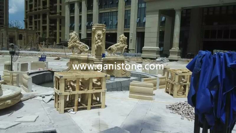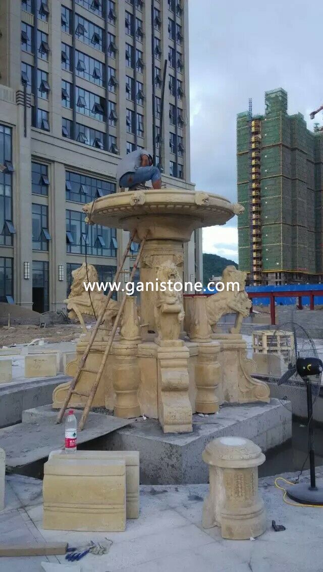 Yellow Granite Lion Fountain