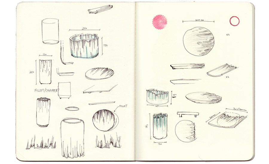 Although the technical drawing for the machine are 2D and extremely basic, this process makes the final shapes unpredictable, organic and one of a kind.