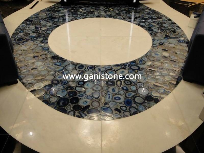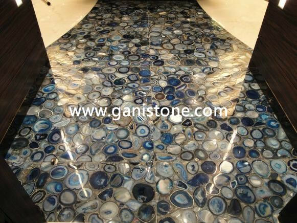 • Product description: Blue Agate is carefully cut and pieced together by hand with natural or coating finish on surfaces which is a good choice for luxury villa and hospitality decoration.