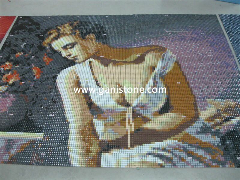 • Product description: The glass mosaic mural are hand cut by artist and it can also be customized by our client. Send us drawing or picture for the pattern you would like to achieve and we’ll make it for you.