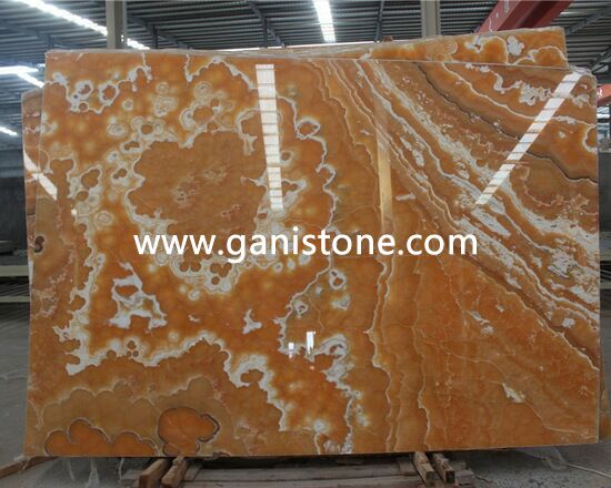 Onyx, a form of quartz, is one of the more popular precious gemstone materials. Gani Onyx has naturally beautiful translucence and line of contrasting colors running throughout which defines the unique color characteristics of the stone. Onyx colors are soft, opulent, and almost fragile in nature. Onyx tile is truly a premium surface material. Onyx tiles require some care, but with a little maintenance you can keep them looking brand new for years. If you are looking for something distinctive, consider onyx tile for your flooring surfaces. Gani Stone Onyx can be applied to flooring,wall fa?ade, vanity tops, columns, carvings, stairs, wall ledge stone veneer, water jet medallion, mosaic, window sills, etc..