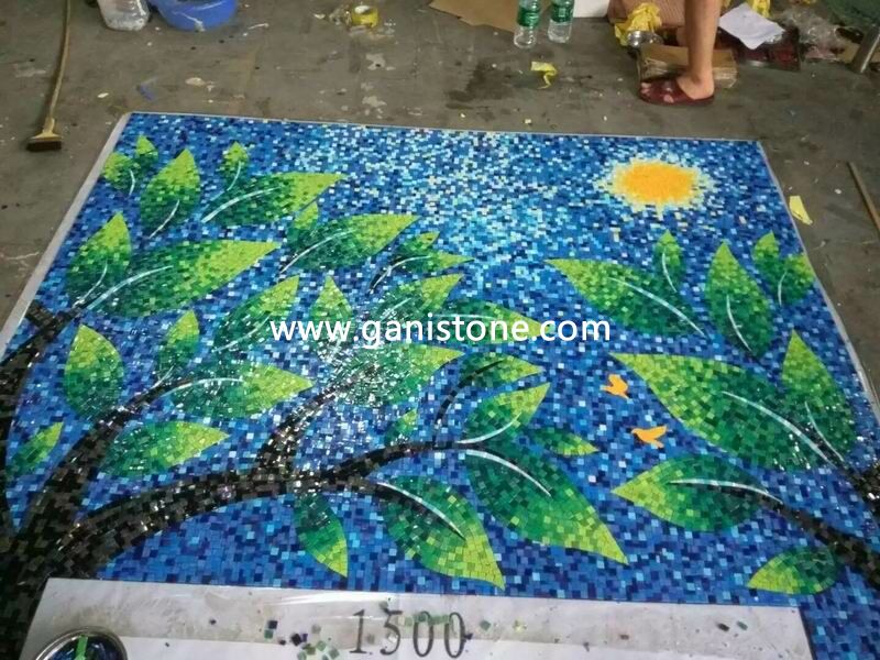 • Product description: The glass mosaic mural are hand cut by artist and it can also be customized by our client. Send us drawing or picture for the pattern you would like to achieve and we’ll make it for you.