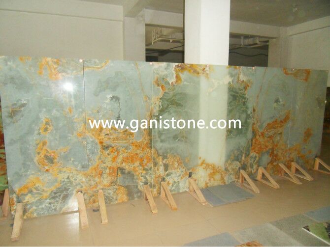 Onyx, a form of quartz, is one of the more popular precious gemstone materials. Gani Onyx has naturally beautiful translucence and line of contrasting colors running throughout which defines the unique color characteristics of the stone. Onyx colors are soft, opulent, and almost fragile in nature. Onyx tile is truly a premium surface material. Onyx tiles require some care, but with a little maintenance you can keep them looking brand new for years. If you are looking for something distinctive, consider onyx tile for your flooring surfaces. Gani Stone Onyx can be applied to flooring,wall fa?ade, vanity tops, columns, carvings, stairs, wall ledge stone veneer, water jet medallion, mosaic, window sills, etc..
