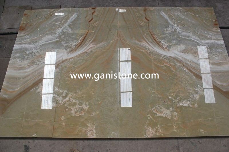 Onyx, a form of quartz, is one of the more popular precious gemstone materials. Gani Onyx has naturally beautiful translucence and line of contrasting colors running throughout which defines the unique color characteristics of the stone. Onyx colors are soft, opulent, and almost fragile in nature. Onyx tile is truly a premium surface material. Onyx tiles require some care, but with a little maintenance you can keep them looking brand new for years. If you are looking for something distinctive, consider onyx tile for your flooring surfaces. Gani Stone Onyx can be applied to flooring,wall fa?ade, vanity tops, columns, carvings, stairs, wall ledge stone veneer, water jet medallion, mosaic, window sills, etc..