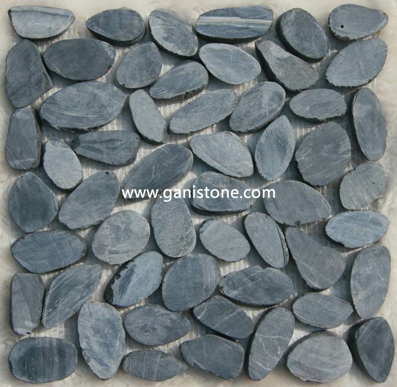 We have mirror polished pebble tile,  sliced/flat cut pebble tile,  standing/stacked pebble tile,  flat pebble tile and pebble border tile, etc..