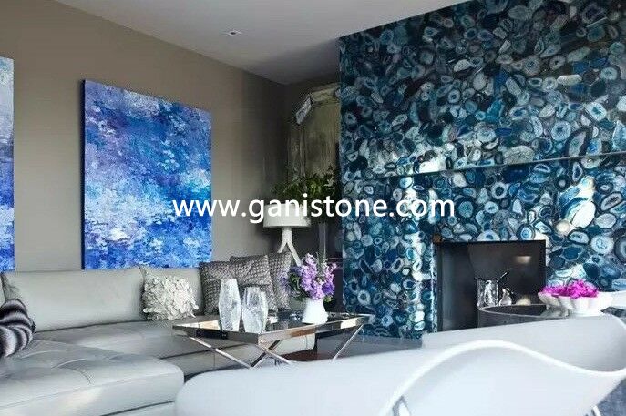 • Product description: Blue Agate is carefully cut and pieced together by hand with natural or coating finish on surfaces which is a good choice for luxury villa and hospitality decoration.
