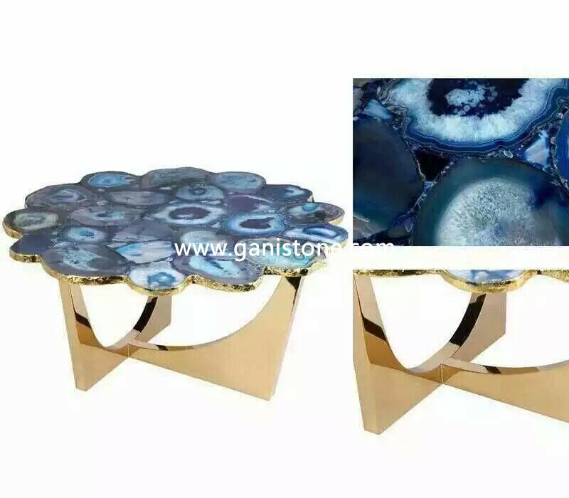 • Blue Agate Gold Steel Coffee Table