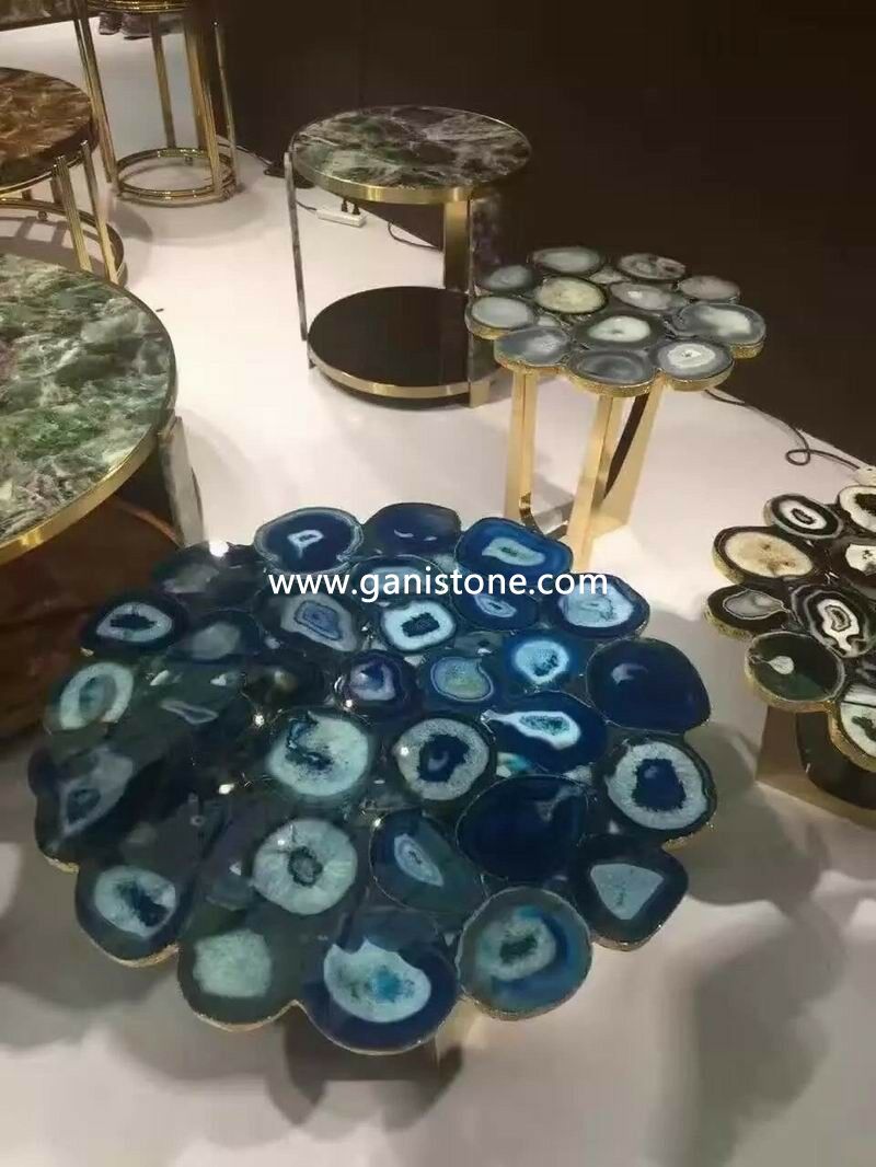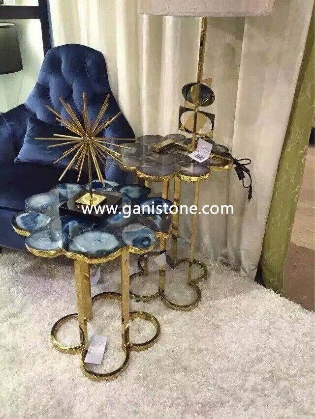 Blue Agate Table with Gold SteelBlue Agate Table with Gold SteelBlue Agate Table with Gold Steel