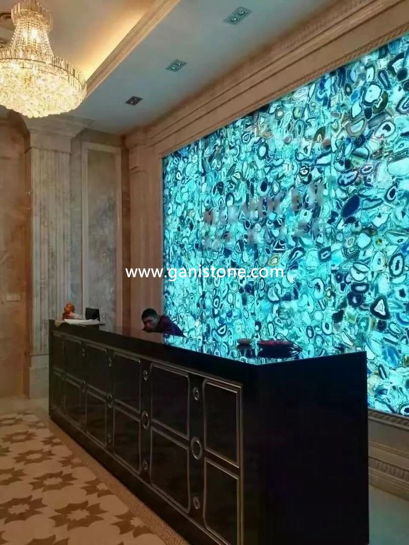Blue Agate Translucent Slab for Lobby Reception Desk Background