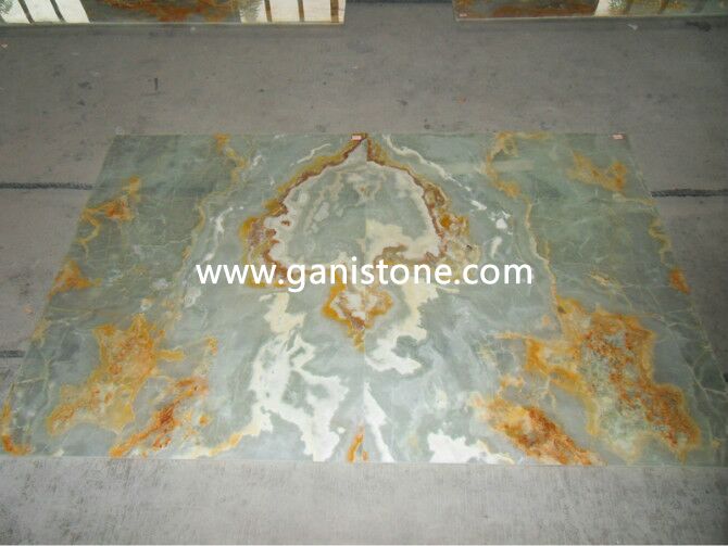 Onyx, a form of quartz, is one of the more popular precious gemstone materials. Gani Onyx has naturally beautiful translucence and line of contrasting colors running throughout which defines the unique color characteristics of the stone. Onyx colors are soft, opulent, and almost fragile in nature. Onyx tile is truly a premium surface material. Onyx tiles require some care, but with a little maintenance you can keep them looking brand new for years. If you are looking for something distinctive, consider onyx tile for your flooring surfaces. Gani Stone Onyx can be applied to flooring,wall fa?ade, vanity tops, columns, carvings, stairs, wall ledge stone veneer, water jet medallion, mosaic, window sills, etc..