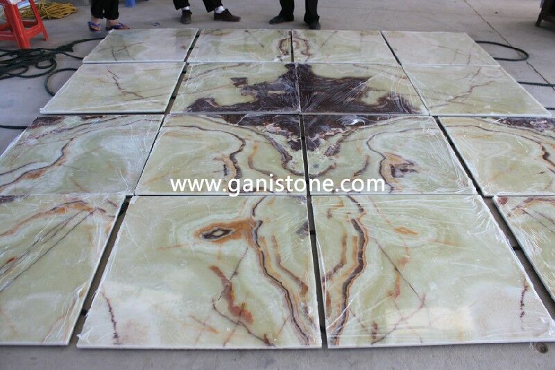 Onyx, a form of quartz, is one of the more popular precious gemstone materials. Gani Onyx has naturally beautiful translucence and line of contrasting colors running throughout which defines the unique color characteristics of the stone. Onyx colors are soft, opulent, and almost fragile in nature. Onyx tile is truly a premium surface material. Onyx tiles require some care, but with a little maintenance you can keep them looking brand new for years. If you are looking for something distinctive, consider onyx tile for your flooring surfaces. Gani Stone Onyx can be applied to flooring,wall fa?ade, vanity tops, columns, carvings, stairs, wall ledge stone veneer, water jet medallion, mosaic, window sills, etc..