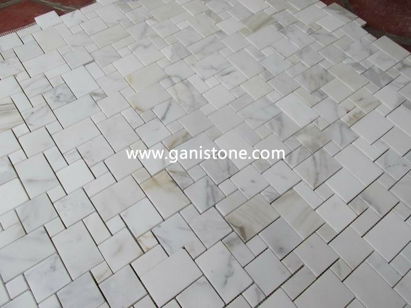 • Product description: Marble mosaic tiles are hand cut from natural marble and mounted on mesh for easy worldwide delivery.