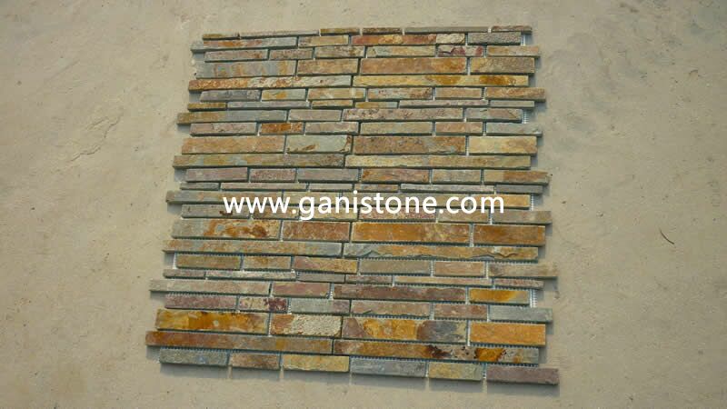 • Product description: Gani Stone slate mosaic is a collection of slate stone pieces that have been arranged in some sort of pleasing pattern. Mosaics are common as backsplashes, as walkways, and as flooring.