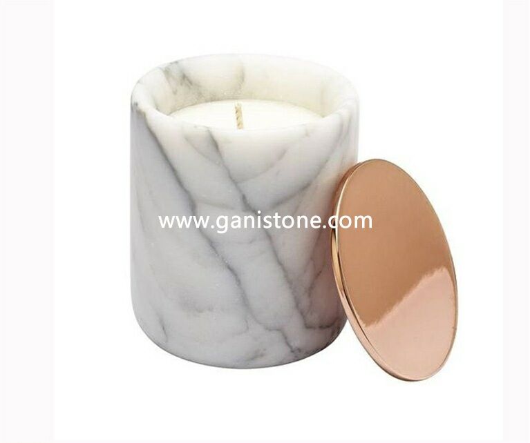 Home Decoration Natural Carrara white marble Stone Candle Jar Container Cup With Lids