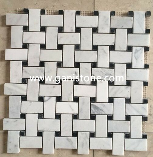 Carrara White Marble Basketweave Mosaic Tile Black Dots 1x2 PolishedCarrara White Marble Basketweave Mosaic Tile Black Dots 1x2 PolishedCarrara White Marble Basketweave Mosaic Tile Black Dots 1x2 PolishedCarrara White Marble Basketweave Mosaic Tile Black Dots 1x2 Polished