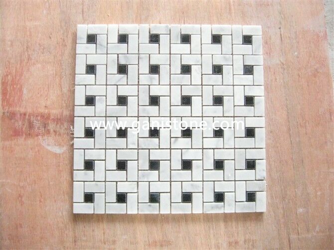 • Product description: Marble mosaic tiles are hand cut from natural marble and mounted on mesh for easy worldwide delivery.