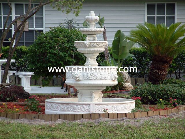 Gani Stone make a wide variety of marble fountains and granite fountains including large tiered fountains, basin fountains, wall fountains, bubbling fountains and spitting fountains. Water fountain is a kinds of artificial landscape, which can be placed both home garden and public place. Carved by talented workers, each stone fountain is actually a piece of art. It can add a look of elegance for your garden, hotel, plaza, etc.. Granite and marble fountains have the two obvious functions: one is wet the surrounding air, reduce the dust. Another is that the jet water can produce negative oxygen ions, which is good for our health.