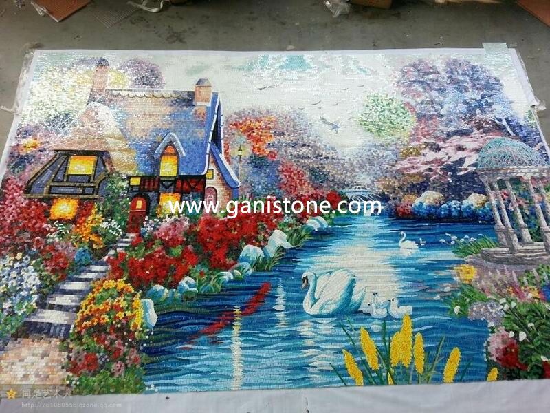 • Product description: The glass mosaic mural are hand cut by artist and it can also be customized by our client. Send us drawing or picture for the pattern you would like to achieve and we’ll make it for you.