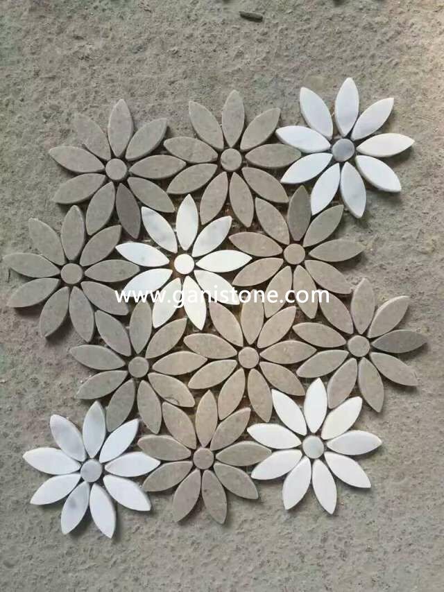 Flower Pattern Non-slip Bathroom Floor Carrara Marble Mosaic Tile