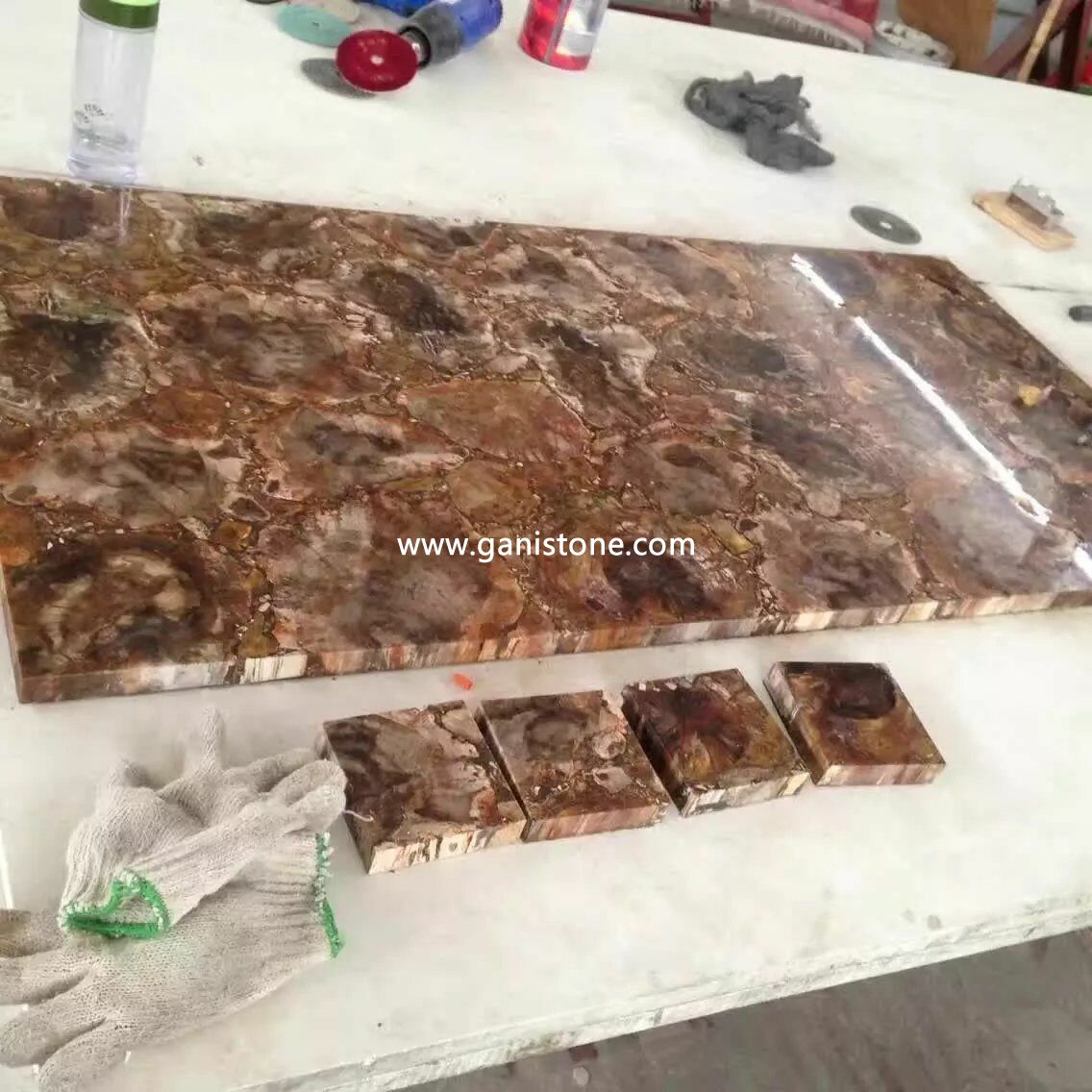 We have a wide range of semi precious stone types for selection, such as agate, aventurine, cat’s eye, chrysanthemum, labradorite, lapis lazuli, malachite, quartz, ox horn, petrified wood, sapphire, solalite blue jasper, tiger eye blue yellow, violet fluorite, zebra stone, red coral stone, amethyst, blue astroies, golden star gemstone, iron tiger eye, red jasper, turquoise, etc.. Each semi-precious stone is individually cut and bound together with an epoxy resin to create not only stunning slabs, but true works of art. They’re ideal for high end project and our clients love to use then for decorating luxury hospitality, villa, commercial project, etc..