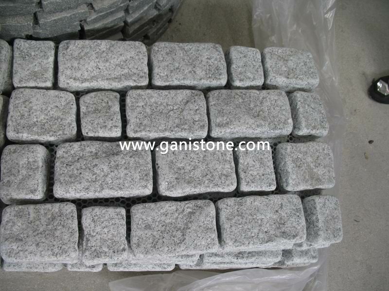Gani Stone offer cobble stone on mesh which are inherently strong and elegantly attractive.Granite cobbles are connected by mesh backing in a tile-like fashion to form pre-assembled geometric modules for simplified installation.These granite sheets make great and artful stone patios and cobblestone walkways.Produced as main size 100x100 90x90 80x80 20-30mm thick cobblestone glued on a mat ready for laying with a fixed 10mm joint. Available in stone options:Light Grey,Dark Grey,Yellow,Black,Red,Pink,Green.