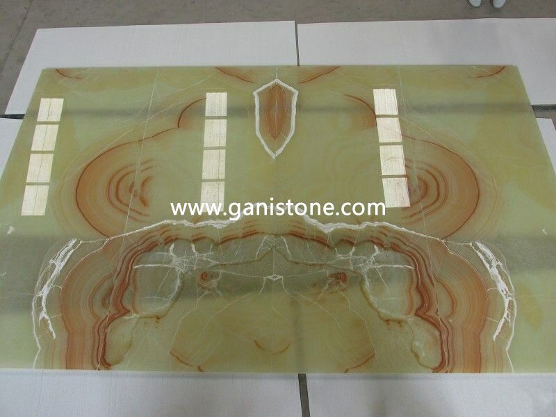 Onyx, a form of quartz, is one of the more popular precious gemstone materials. Gani Onyx has naturally beautiful translucence and line of contrasting colors running throughout which defines the unique color characteristics of the stone. Onyx colors are soft, opulent, and almost fragile in nature. Onyx tile is truly a premium surface material. Onyx tiles require some care, but with a little maintenance you can keep them looking brand new for years. If you are looking for something distinctive, consider onyx tile for your flooring surfaces. Gani Stone Onyx can be applied to flooring,wall fa?ade, vanity tops, columns, carvings, stairs, wall ledge stone veneer, water jet medallion, mosaic, window sills, etc..