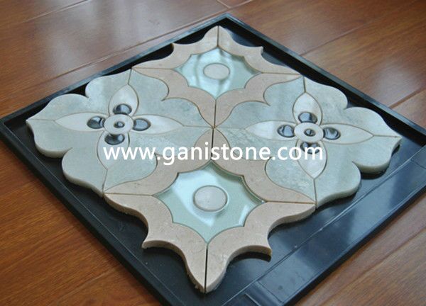 • Glass mix Stone Water jet mosaic,mosaic flower pattern for flooring, floor mosaic tile