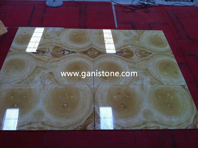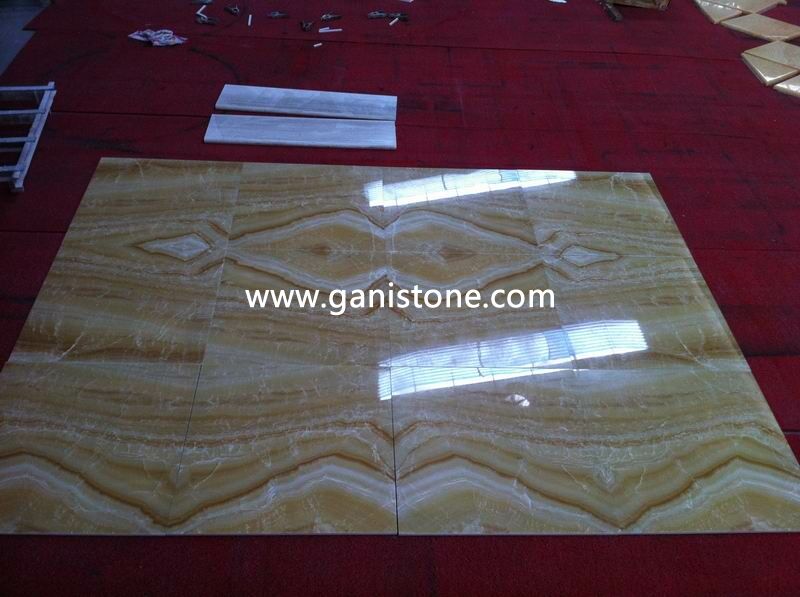 Onyx, a form of quartz, is one of the more popular precious gemstone materials. Gani Onyx has naturally beautiful translucence and line of contrasting colors running throughout which defines the unique color characteristics of the stone. Onyx colors are soft, opulent, and almost fragile in nature. Onyx tile is truly a premium surface material. Onyx tiles require some care, but with a little maintenance you can keep them looking brand new for years. If you are looking for something distinctive, consider onyx tile for your flooring surfaces. Gani Stone Onyx can be applied to flooring,wall fa?ade, vanity tops, columns, carvings, stairs, wall ledge stone veneer, water jet medallion, mosaic, window sills, etc..