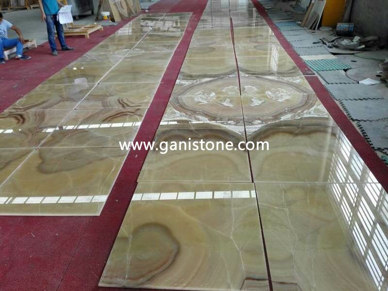 Onyx, a form of quartz, is one of the more popular precious gemstone materials. Gani Onyx has naturally beautiful translucence and line of contrasting colors running throughout which defines the unique color characteristics of the stone. Onyx colors are soft, opulent, and almost fragile in nature. Onyx tile is truly a premium surface material. Onyx tiles require some care, but with a little maintenance you can keep them looking brand new for years. If you are looking for something distinctive, consider onyx tile for your flooring surfaces. Gani Stone Onyx can be applied to flooring,wall fa?ade, vanity tops, columns, carvings, stairs, wall ledge stone veneer, water jet medallion, mosaic, window sills, etc..