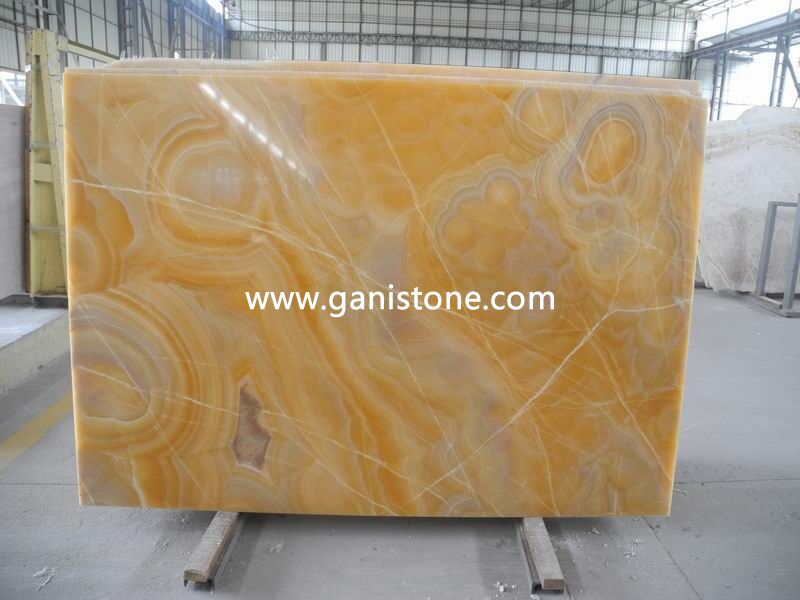 Onyx, a form of quartz, is one of the more popular precious gemstone materials. Gani Onyx has naturally beautiful translucence and line of contrasting colors running throughout which defines the unique color characteristics of the stone. Onyx colors are soft, opulent, and almost fragile in nature. Onyx tile is truly a premium surface material. Onyx tiles require some care, but with a little maintenance you can keep them looking brand new for years. If you are looking for something distinctive, consider onyx tile for your flooring surfaces. Gani Stone Onyx can be applied to flooring,wall fa?ade, vanity tops, columns, carvings, stairs, wall ledge stone veneer, water jet medallion, mosaic, window sills, etc..