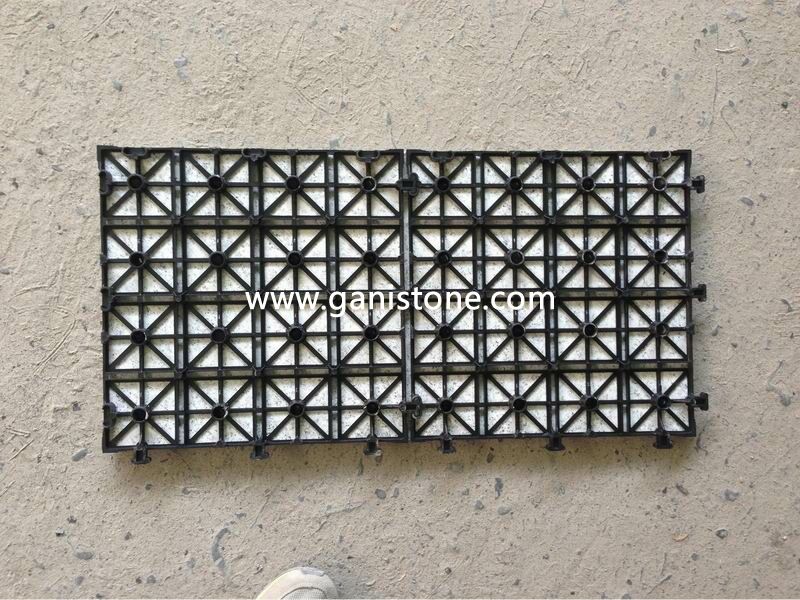 Gani Stone is a professional China supplier for Interlocking Stone Deck Tiles. The simple light weight DIY decking product is made from natural stone like granite, marble, sandstone, pebbles, etc. backed with plastic base. The stone on surface is bonded to an engineered fiberglass base. The result is a beautiful strong commercial patio stone paving system which can be installed over any existing roof or balcony surface. You can also install these over an existing wood deck with the use of joist plate supports. This product is durable long lasting and very affordable for both commercial and residential applications. Good for balcony decks, roof terraces, old weather worn wood decks and even concrete slabs in the backyard.