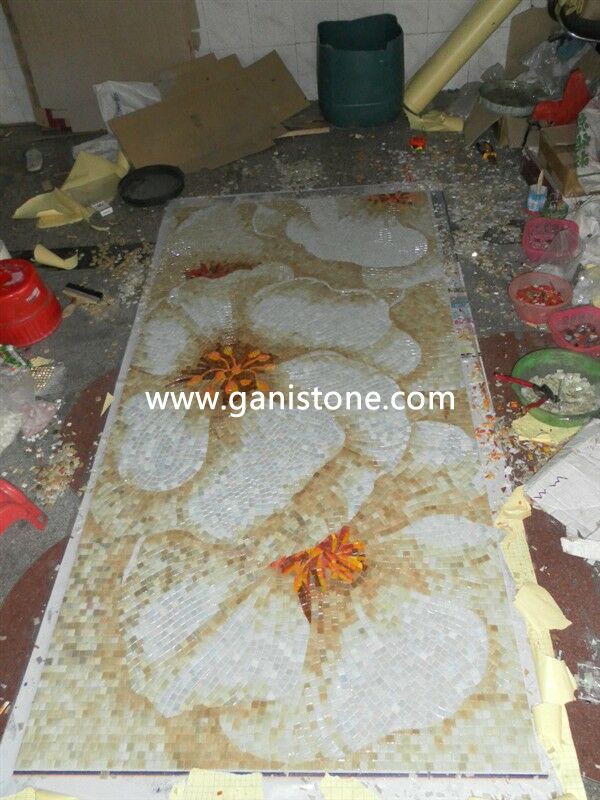 • Product description: The glass mosaic mural are hand cut by artist and it can also be customized by our client. Send us drawing or picture for the pattern you would like to achieve and we’ll make it for you.