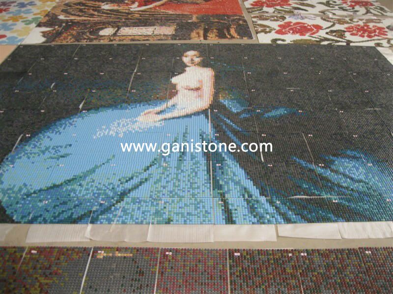 • Product description: The glass mosaic mural are hand cut by artist and it can also be customized by our client. Send us drawing or picture for the pattern you would like to achieve and we’ll make it for you.