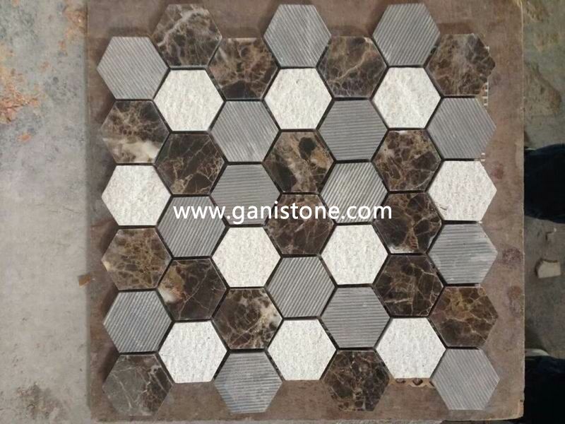 • Product description: Marble mosaic tiles are hand cut from natural marble and mounted on mesh for easy worldwide delivery.