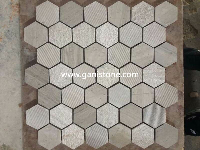 • Product description: Marble mosaic tiles are hand cut from natural marble and mounted on mesh for easy worldwide delivery.