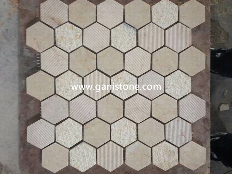 • Product description: Marble mosaic tiles are hand cut from natural marble and mounted on mesh for easy worldwide delivery.