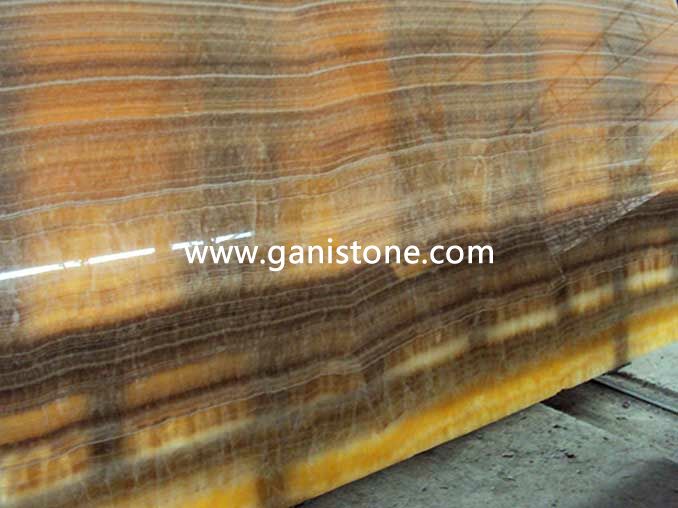 Onyx, a form of quartz, is one of the more popular precious gemstone materials. Gani Onyx has naturally beautiful translucence and line of contrasting colors running throughout which defines the unique color characteristics of the stone. Onyx colors are soft, opulent, and almost fragile in nature. Onyx tile is truly a premium surface material. Onyx tiles require some care, but with a little maintenance you can keep them looking brand new for years. If you are looking for something distinctive, consider onyx tile for your flooring surfaces. Gani Stone Onyx can be applied to flooring,wall fa?ade, vanity tops, columns, carvings, stairs, wall ledge stone veneer, water jet medallion, mosaic, window sills, etc..