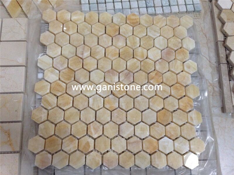 • Product description: GANI STONE Onyx mosaic is a collection of onyx pieces that have been arranged in some sort of pleasing pattern.