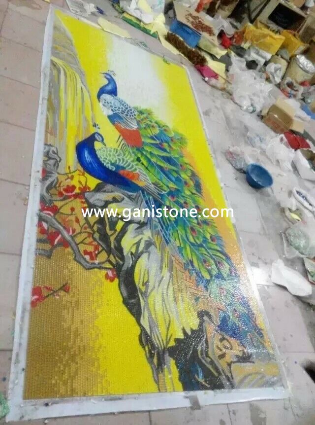 • Product description: The glass mosaic mural are hand cut by artist and it can also be customized by our client. Send us drawing or picture for the pattern you would like to achieve and we’ll make it for you.