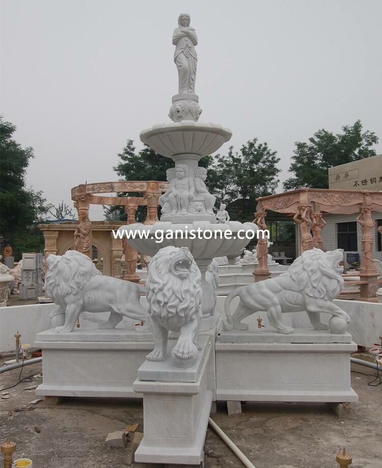 Gani Stone make a wide variety of marble fountains and granite fountains including large tiered fountains, basin fountains, wall fountains, bubbling fountains and spitting fountains. Water fountain is a kinds of artificial landscape, which can be placed both home garden and public place. Carved by talented workers, each stone fountain is actually a piece of art. It can add a look of elegance for your garden, hotel, plaza, etc.. Granite and marble fountains have the two obvious functions: one is wet the surrounding air, reduce the dust. Another is that the jet water can produce negative oxygen ions, which is good for our health.