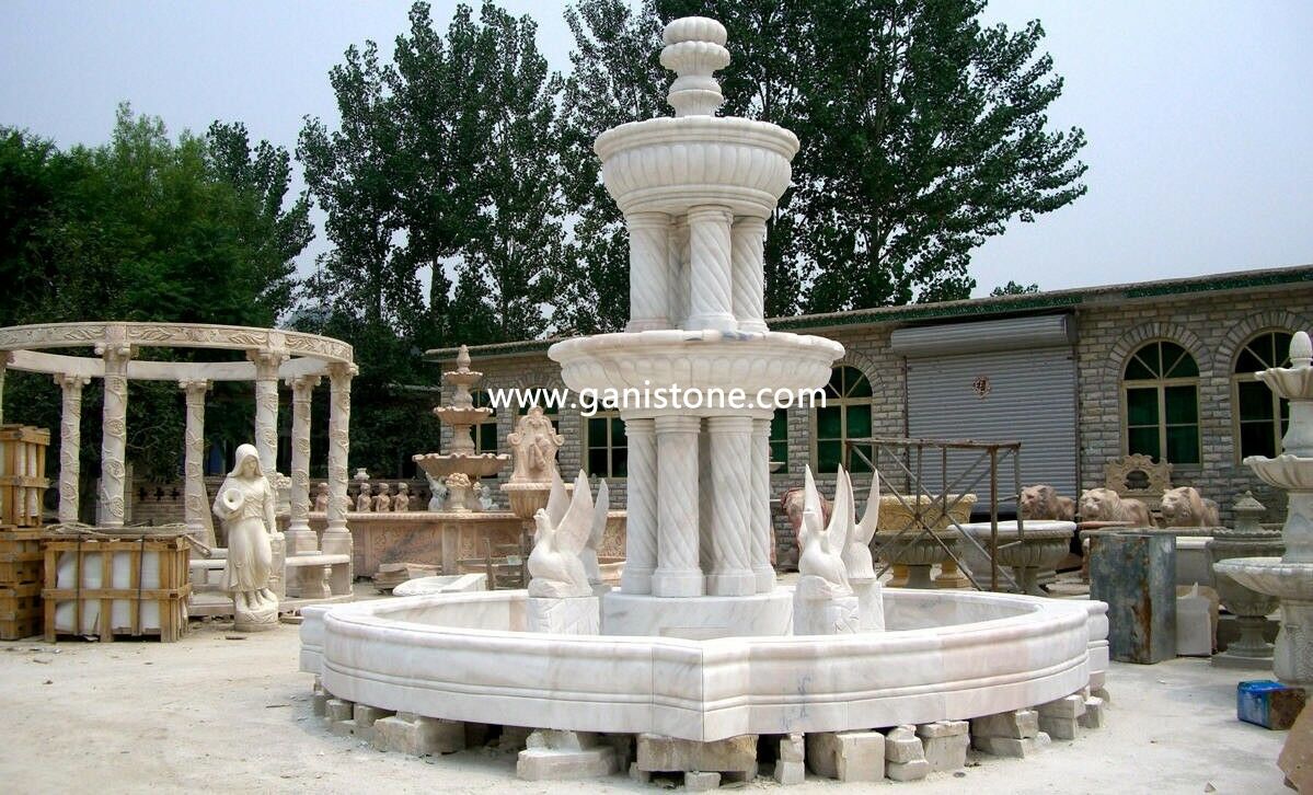 Gani Stone make a wide variety of marble fountains and granite fountains including large tiered fountains, basin fountains, wall fountains, bubbling fountains and spitting fountains. Water fountain is a kinds of artificial landscape, which can be placed both home garden and public place. Carved by talented workers, each stone fountain is actually a piece of art. It can add a look of elegance for your garden, hotel, plaza, etc.. Granite and marble fountains have the two obvious functions: one is wet the surrounding air, reduce the dust. Another is that the jet water can produce negative oxygen ions, which is good for our health.