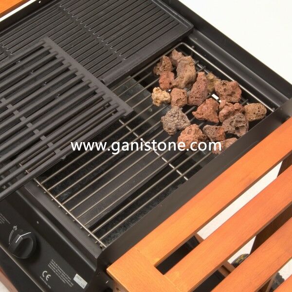 Gani Stone Lava rocks are typically used in gas barbecue grills to absorb and reflect heat off the propane burners which can be available in brown, red and black colors. Lava rocks are suitable to cook meat, fish and many other foods. The use has proved their advantages such as the extreme ease of cleaning, high cooking speed, practical use and saving of energy cost. Grilling is a method of cooking meat and vegetables on devices which vary in size and power requirements. The process uses a metal container that is heated from the bottom and cooks food which is placed on cooking grids that lay above the flames. Grills are heated with electricity, charcoal or gas flame in combination with lava rocks. Lava rocks are used for gas grills and are usually sold with them. Using lava rocks for grilling is much like using charcoal.