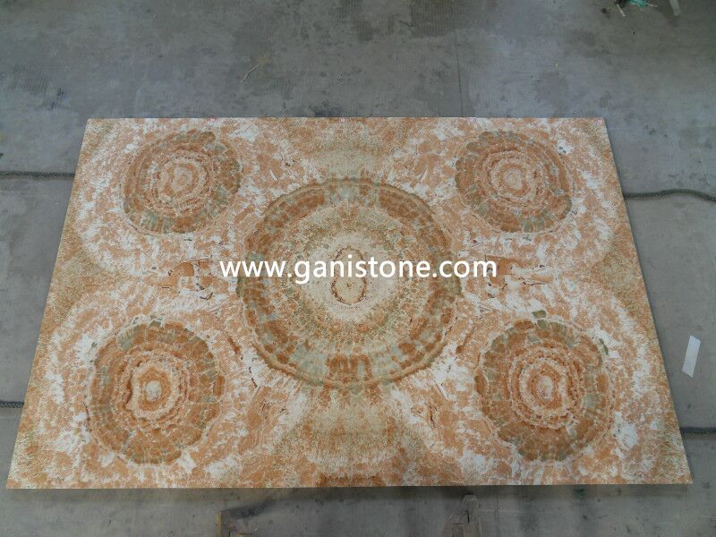 Onyx, a form of quartz, is one of the more popular precious gemstone materials. Gani Onyx has naturally beautiful translucence and line of contrasting colors running throughout which defines the unique color characteristics of the stone. Onyx colors are soft, opulent, and almost fragile in nature. Onyx tile is truly a premium surface material. Onyx tiles require some care, but with a little maintenance you can keep them looking brand new for years. If you are looking for something distinctive, consider onyx tile for your flooring surfaces. Gani Stone Onyx can be applied to flooring,wall fa?ade, vanity tops, columns, carvings, stairs, wall ledge stone veneer, water jet medallion, mosaic, window sills, etc..