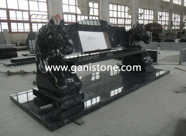 Luxury Black Granite Carved Memorial Bench with Horse Head