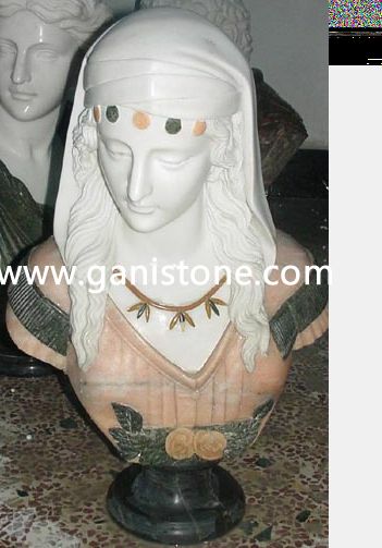 A marble bust is a head portrait of the real person, which can be a reproduction of classic sculpture or modern carving of a live person. If you are in the market for marble bust sculpture, consider Gani Stone. The state of the art class and fiber glass workshop operated by our factory in China has created hundreds of fiberglass models that have been used for precise marble sculpturing, and is ready to make the models for your custom projects. Each Gani Stone's marble bust is an artwork hand carved by our talent craftsman. Busts listed here are just some of the most popular designs. If you didn't find the bust you're looking for, you can send us photos by email, or call us for more detailed information. Recommended colors for carving marble bust: white marble for body and other colors for accessories. Finish for marble busts are available with polished and honed.