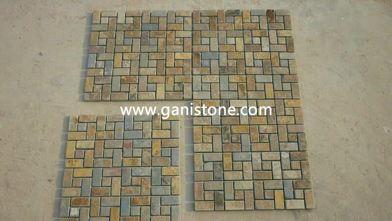• Product description: Gani Stone slate mosaic is a collection of slate stone pieces that have been arranged in some sort of pleasing pattern. Mosaics are common as backsplashes, as walkways, and as flooring.