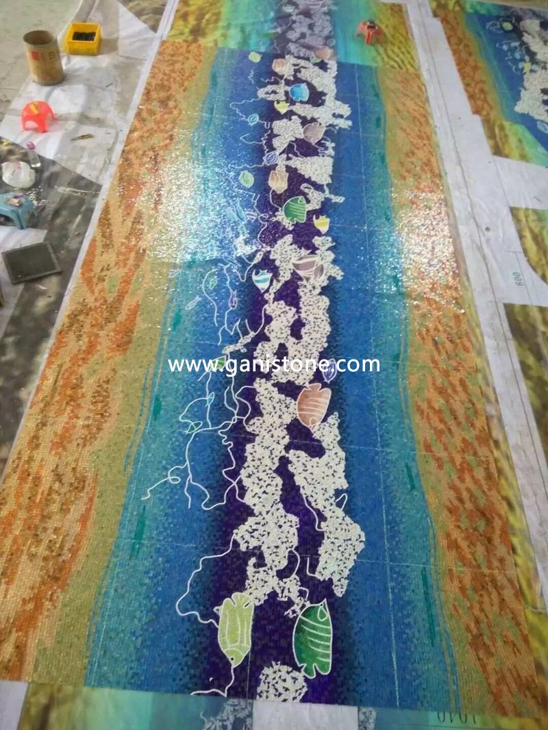 The glass mosaic mural are hand cut by artist and it can also be customized by our client. Send us drawing or picture for the pattern you would like to achieve and we’ll make it for you.