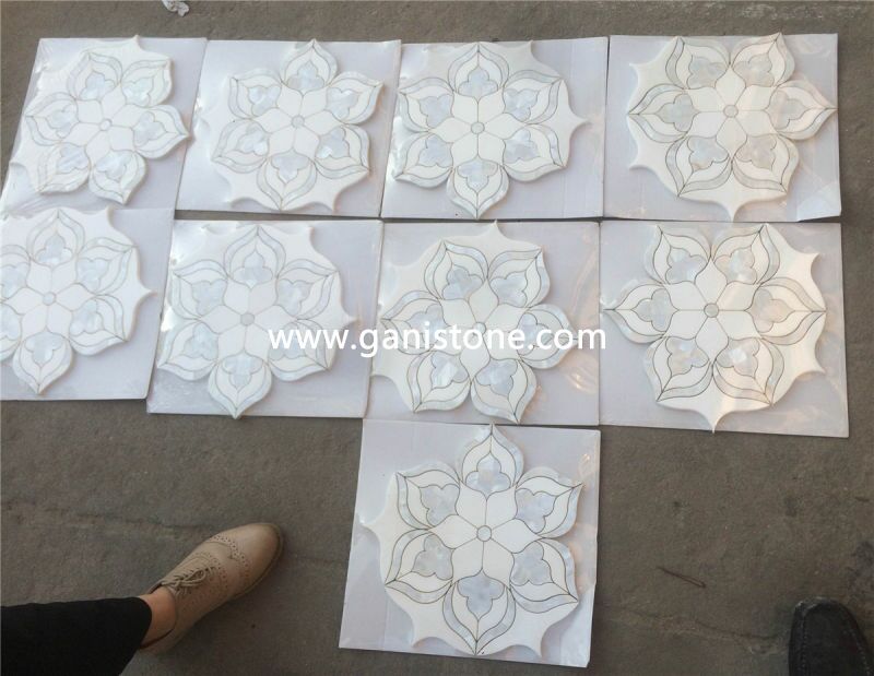 • Product description: Waterjet stone mosaic tiles are made by cutting natural stone slabs with a waterjet, assembled as tight as possible on a solid backer. Stones are polished and sealed, and you can see it like the wallp