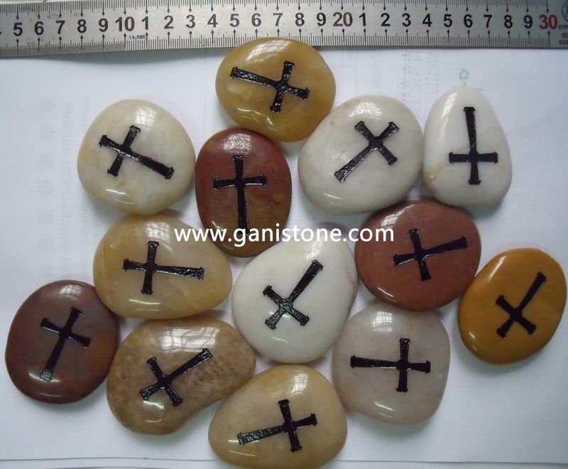 The natural river stone can be polished or not polished. It has three colors including white, black and mixed. It can be carved with letters, logos and designs. The patterns can be customized. The natural river stone is a good choice for gifts.